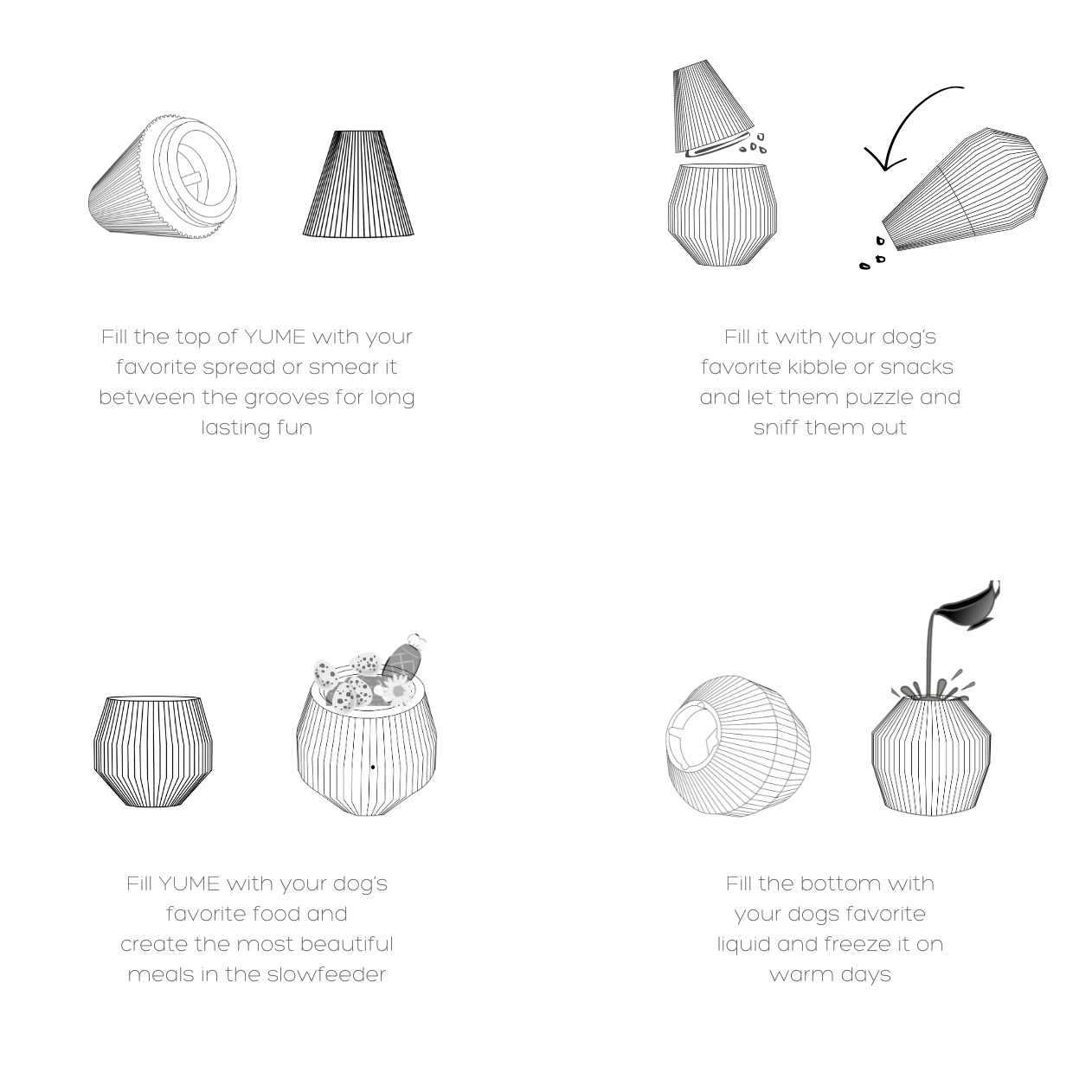 Dies ist das vielseitigste Anreicherungsprodukt! YUME ist ein wunderschönes Bereicherungsspielzeug für deinen Hund, das sich perfekt in dein Wohnzimmer einfügt. YUME besteht aus zwei Teilen und kann daher auf 6 verschiedene Arten verwendet werden: